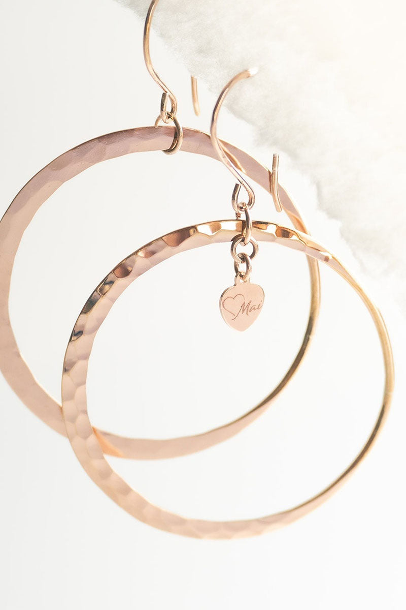 Signature Luna Hoops are Mai Love's most popular hoops! With a wider hand-shaped hoop, hammered and textured into a crescent moon. Lightweight, free moving, full of sparkle and shine. Each one unique. Luna Hoops will easily become your new fave's!