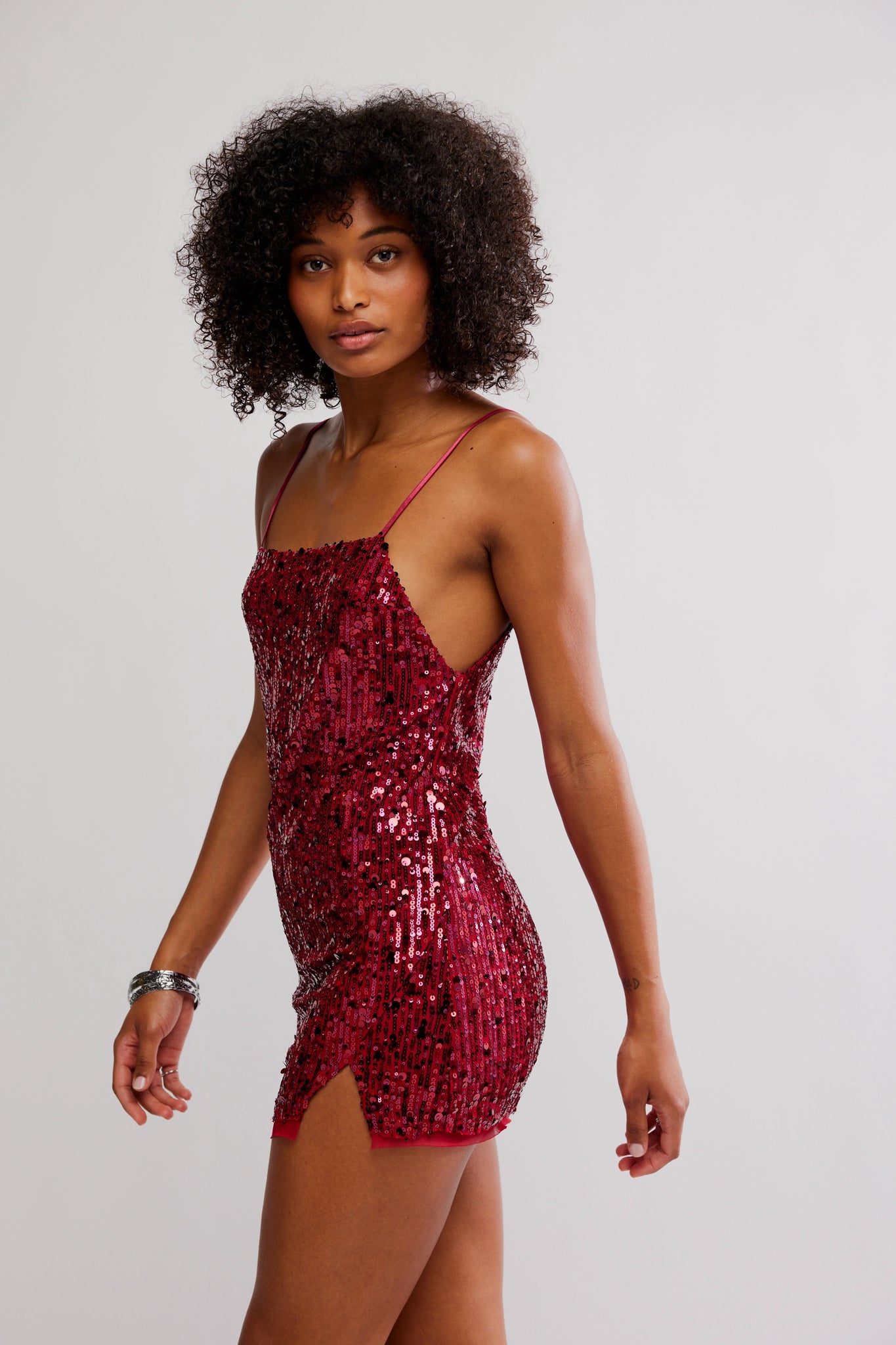 This dazzling mini slip from Intimately is featured in a lightweight fabrication with a straight neckline, side slit, and sequin embellishments for an enchanting finish.