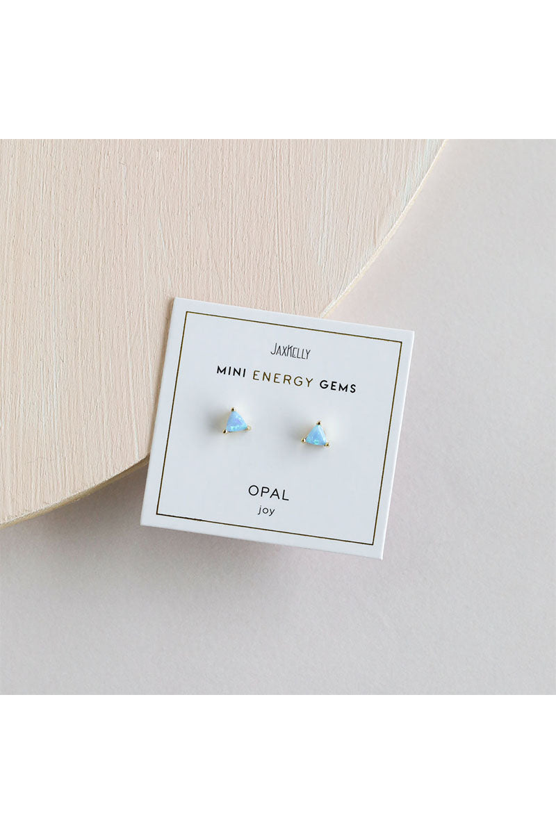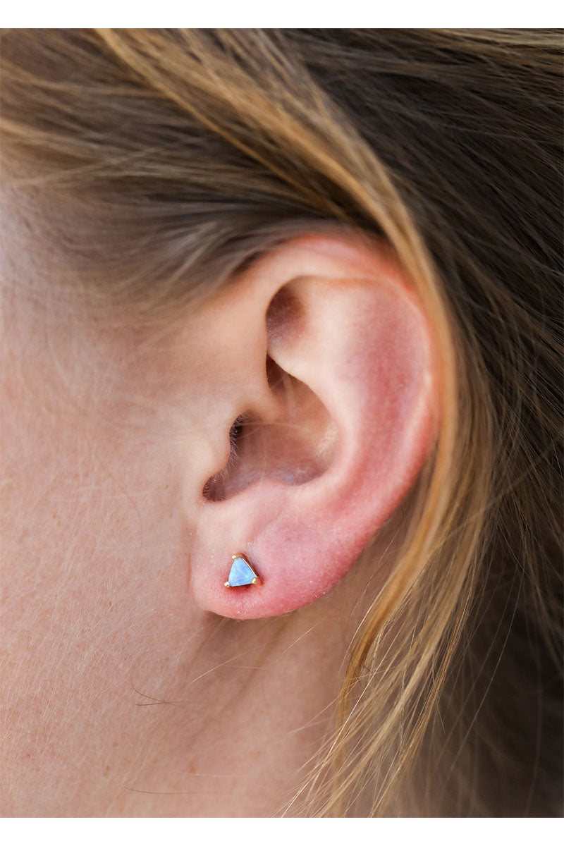 Featuring a petite polished synthetic Opal stone. Each gem is 4.8 mm tall & held in an 18k gold-plated setting with a sterling-silver base. Each stone is unique and will vary in color and size. Nickel, lead, and brass-free.