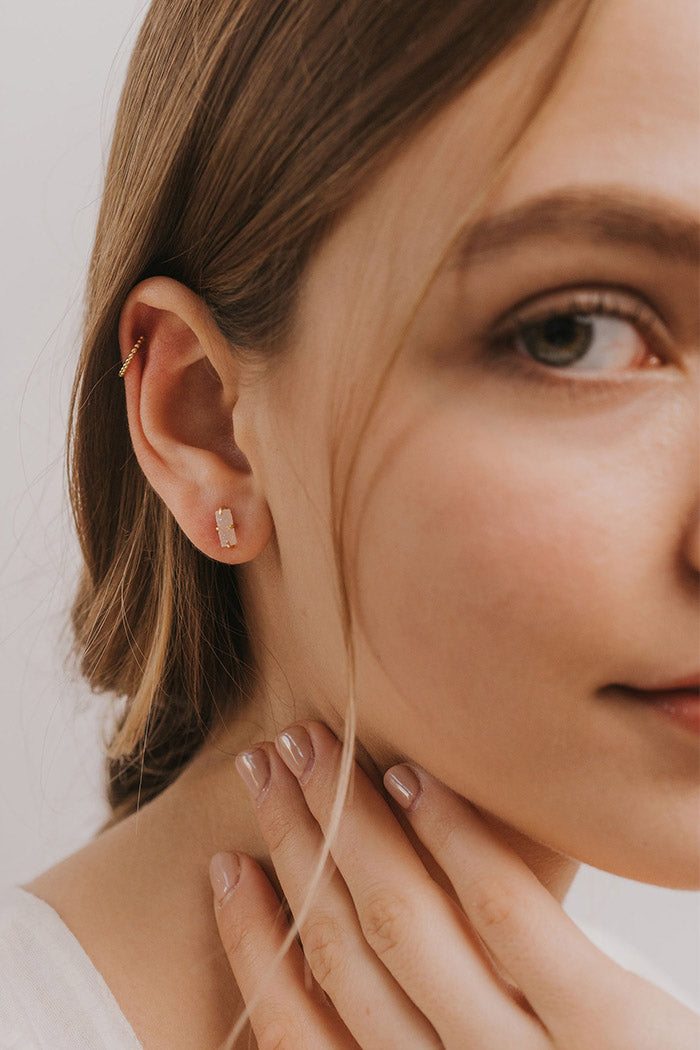 Natural druzy stone cut into shape and set in an 18k gold-plated prong earring over sterling silver, also known as 'vermeil.' Handmade.